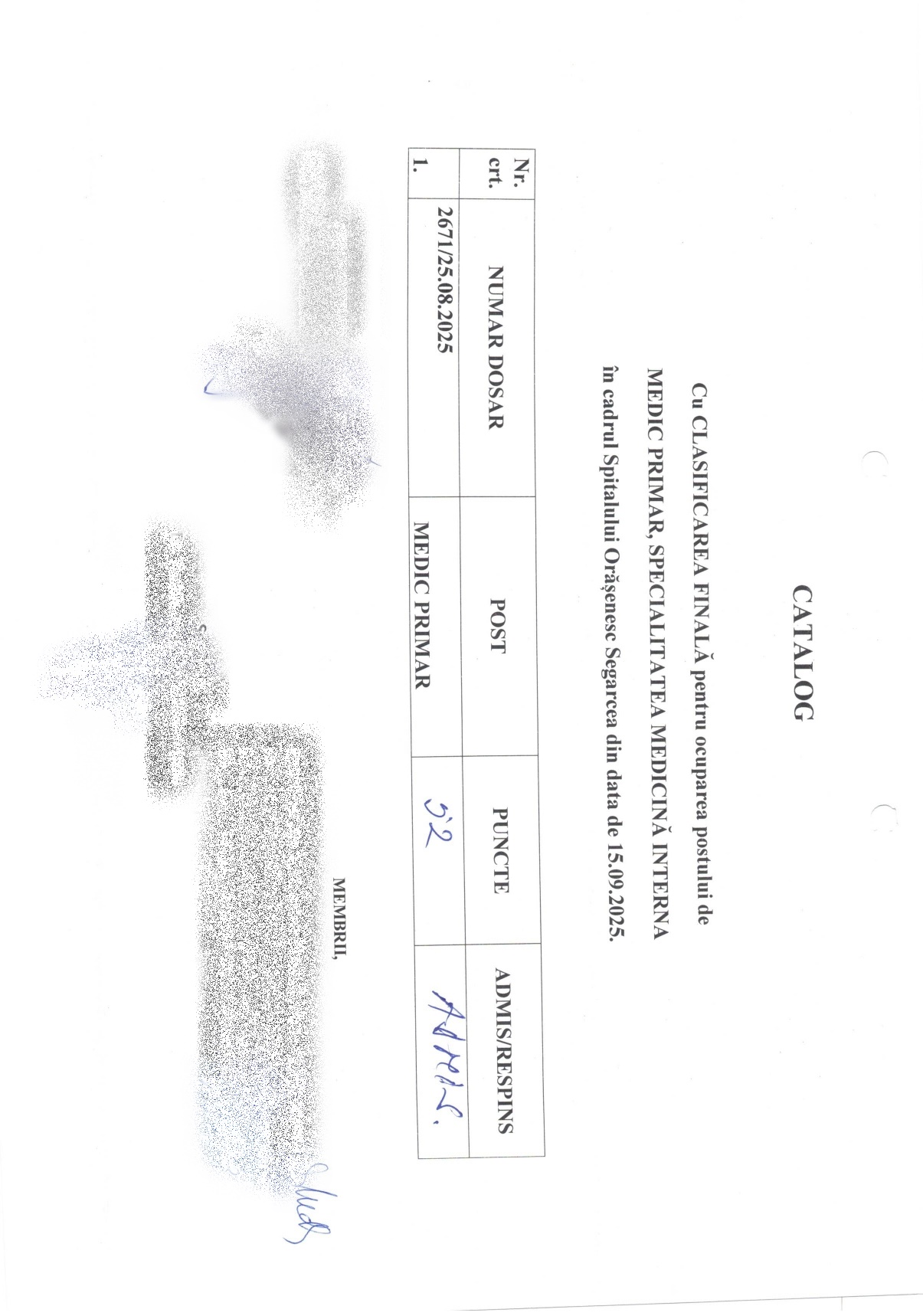 18.08.2025 – SPITALUL ORASENESC SEGARCEA, anunta scoaterea la concurs a unui post cu norma intreaga de medic, in specialitatea Medicina Interna